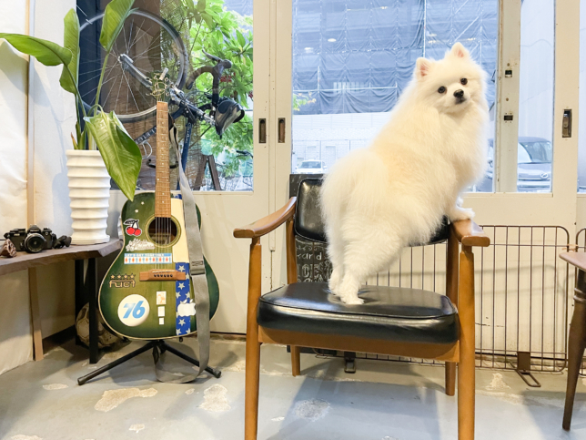 16歳の時に買ったアコースティックギターを宿のフリースペースに置いてます。
