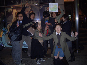 写真は友達の誕生日にサプライズを仕掛ける仲間達。